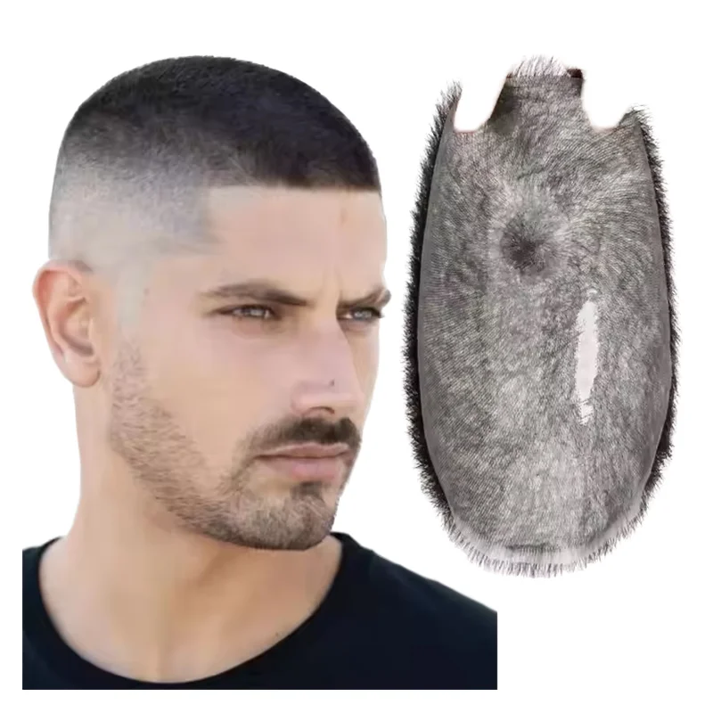 Prothèse de cheveux pour hommes Système capillaire pour hommes Ligne de cheveux naturelle invisible Base complète en soie Perruque de cheveux humains droits noirs Toupet pour hommes.